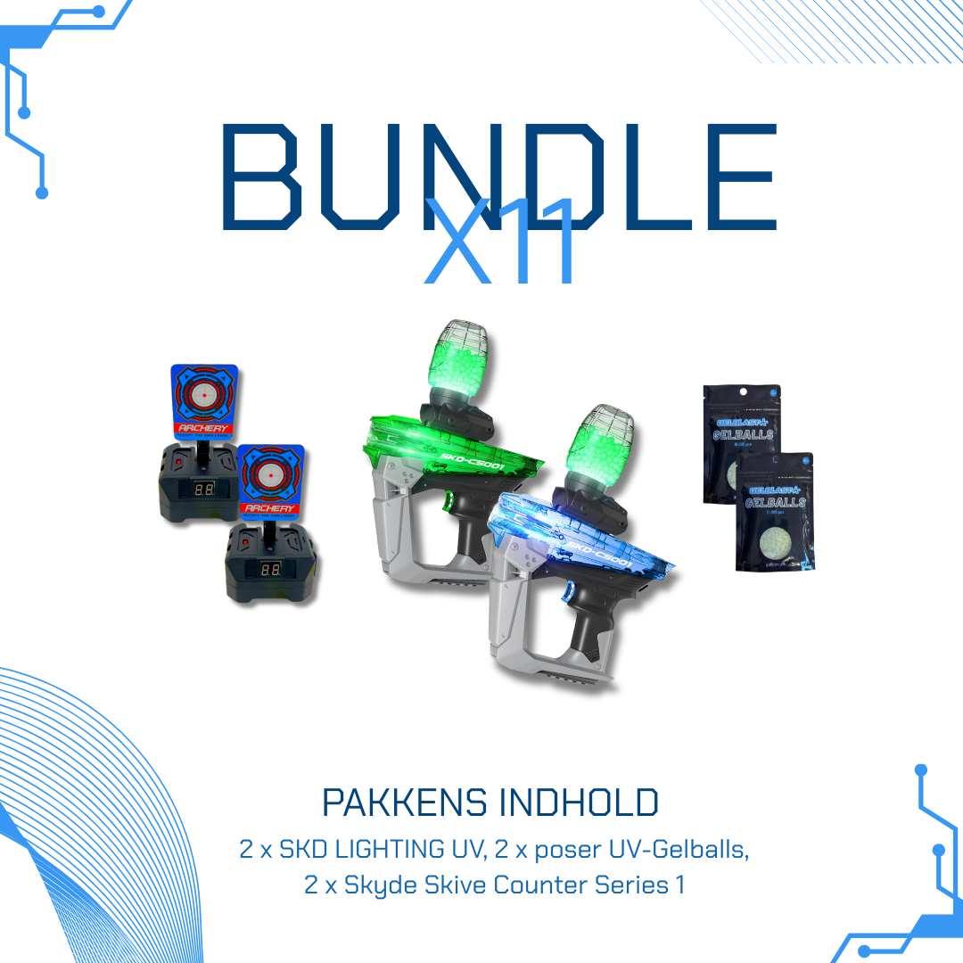 Vores produkter er sikre og miljøvenlige med selvopløselige Gel Balls. Vælg din favoritmodel og oplev timevis af sjov både indendørs og udendørs. Gør dig klar til spændende kampe med Gel Blasters.